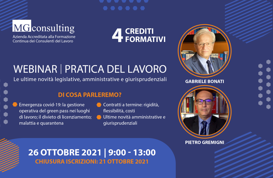 Rapporto di lavoro Pratica del lavoro 2021: sono aperte le iscrizioni per la lezione di Ottobre 14 Ottobre 2021